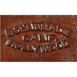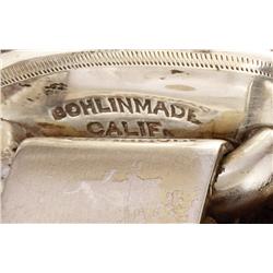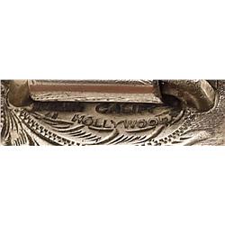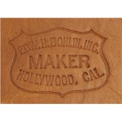 He met Tom Mix while performing at the Pantages Theatre in Hollywood and Mix convinced Ed to stay and produce silver and leather items in the Los Angeles area. From his humble beginnings to his fame in Hollywood for high-end pieces, Ed crafted more than 12,000 Bohlin saddles including many grand silver outfits of Tournament of Roses Parade fame. He also dressed many silver screen heroes and horses with his grand style of buckles, spurs and gun belts. His company was without equal among western style silversmiths building a reputation on flawless workmanship. The Edward H Bohlin company, which operated from the early 1920s through the 1980s (under Ed's watchful eye but continues to operate under other ownership), reached its apex in the 1930s when the Hollywood cowboys reigned supreme. Bohlin was a stickler for details and employed the finest silver and leather workers of his era to satisfy discriminating clients including Mae West, Hopalong Cassidy, Monte Hale, Lyndon Johnson and Ronald Reagan.