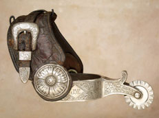 Bohlin spurs are also highly coveted. Bohin made magic with plain Crockett blanks when he covered them with fine silver and gold, making leather straps and conchos to match. The same for bits, which were highly sought after and matched the headstalls and breast collars of the parade outfits.