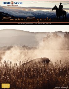 26SmokeSignalsDontFretAbouttheFuture-InvestinthePastHighNoonWesternAmericanaPH310.202.9010FAX310.202.9011NewsletterSubmissionssmokesignalshighnoon.comInformationinfohighnoon.comwww.highnoon.comPrivateTreatySalesAppraisalsConsignmentsAcquisitionsEstateServicesInvestmentConsultationsMissionStatementSmokeSignalsblowsyourwayfromHighNoonWesternAmericanaofLosAngelesCaliforniaproducersoftheHighNoonAntiqueShowAuctionheldeachJanuaryinMesaPhoenixArizonasince1991.Ourmagazinewasfoundedin2010fromourdesiretosharethoughtsandfactswithandfromourHighNoonfamily.WewriteaboutwhatweknowcowboyandIndianartifactshighlightdealersandcollectorstheirthoughtsandmemories.Wealsolovetofeedourreaderswithgreatrecipes.WeofferfreewesternmusicalookatfactoidsintrinsictoourinterestsgiveyouinsightintothenewestbooksandtellyouwhatisgoingonacrosstheUnitedStates.Andhopefullyweeducatealongtheway.LindaKohnSherwoodEditorSendusaSmokeSignalSmokeSignalsisforandaboutallofthewonderfulpeopleinourHighNoonfamily.IfyouhavenewsyouwanttosharehottipsonwhatsgoingonintheWesternAmericanaworldorjustasuggestionofsomethingyoudliketoseeuscoversendusanemailatsmokesignalshighnoon.comChiefPublisherHighNoonWesternAmericanaChiefEditorLindaKohnSherwoodChiefGraphicDesignerCurtisHillArtDirectionServicesChiefWriterJayneSkeJSLAMediaSolutionsHighNoon9929VeniceBlvd.LosAngelesCA90034HIGHNOON